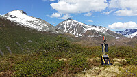 Kyrkjetaket og Kjøvskartinden er toppar som eg har tenkt på ei stund. Det er populære skitoppar, men eg er då mest glad i å utforske toppane med joggesko!! Dette var rein impulstur og dei blir alltid bra :) Nydeleg vær var det og toppar som har vore tenkt ei stund. Allikevel hadde eg ikkje lese meg opp eller hadde kart for området, bortsett ifrå Gps. som då er ein fantastisk ting og eit fast turfølge. Ellers synast eg det kjekkaste er å følge sine eigne veivalg, lese og vurdere terrenget utifrå sine vurderingar og erfaringar. Ingen å sjå i fjella denne dagen, det var blikk stille og varmt på toppane! Denne turen, utsikta, været og den totale stilla åleine... tenker eg er den finaste turen i år. Ganske greit å gå desse toppane ifrå Kavlisetra, herifrå er det ikkje turmerka. >>>