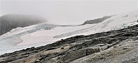 Dette er ein tur som eg kan like som aller best! Naturen er rå og mektig! Middagsnibba 1443 ligg lite inne med info om rute opp! Sett vekk ifrå at ein kan nå den fint på ski via Hanekammen 1651 moh. Ekstra kjekt då å finure terrenget som tilsynelatande ser knotete ut til fots ifrå nye kanter. Skodda låg trolsk idag med yr på toppane! Det la likevel ingen hindring på utforskningstrangen og ein eventuell retur. Nydelige haustfargar og fantastisk å studere breane & brefalla som Melkevollbreen & Briksdalsbreen/Jostedalsbreen. Ingen ting anna å seie enn stor fascinasjon for naturen i dette riket!