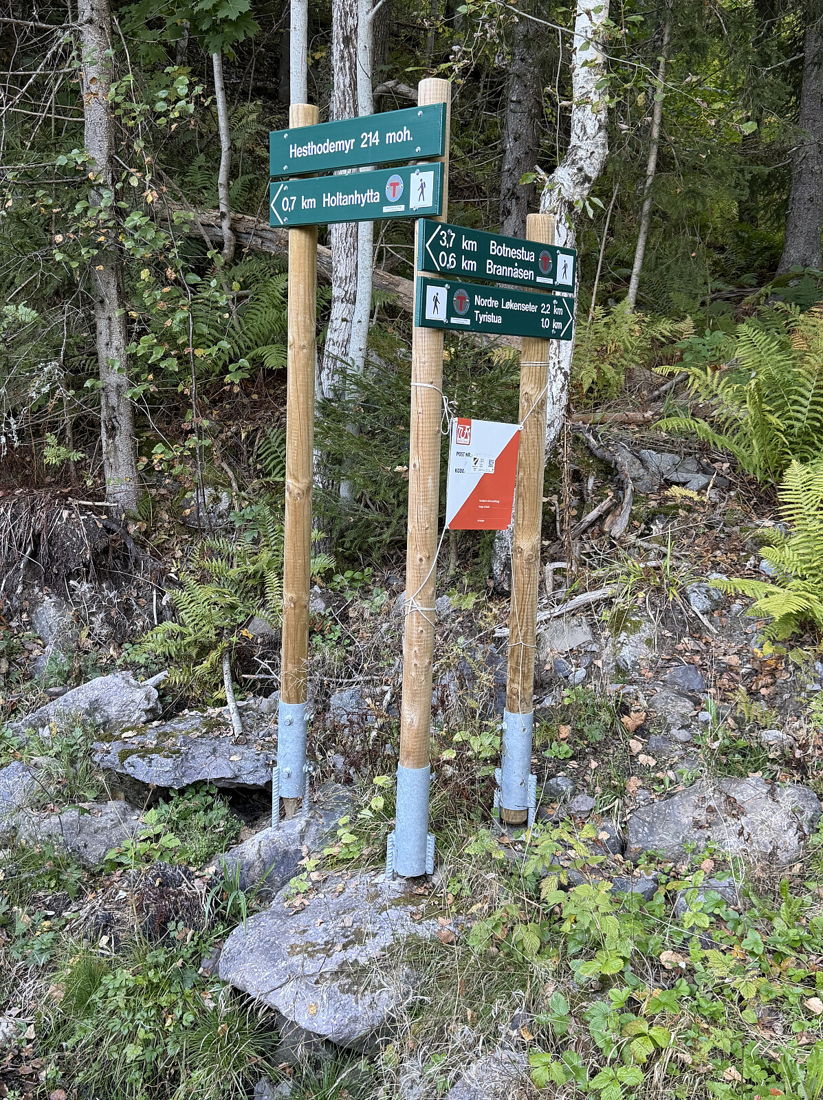 Parkerte ved Jâmsfjell parkering. En meget stor parkeringsplass. Denne ligger i sydøstenden av Birtevatn. Litt mere fuktig tur dette. Lett duskregn mesteparten av dagen, og på til dels på myrer med og uten klopp. Siste halvdel av turen gikk i skogsterreng, med litt opp og nedstigning. Dette er en selvbetjent hytte med 13 sengeplasser.