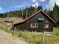 Kjørte til Lunner / Roa og tok den nye fine veien over til Jevnaker. Videre på Svenådalen bomvei forbi Tverrsjøstallen og inn til vannet Gjerdingen. Sandbekkhytta ligger like nord for vannet og er en fin liten ubetjent DNT hytte. Jeg kjørte nesten helt til døra.