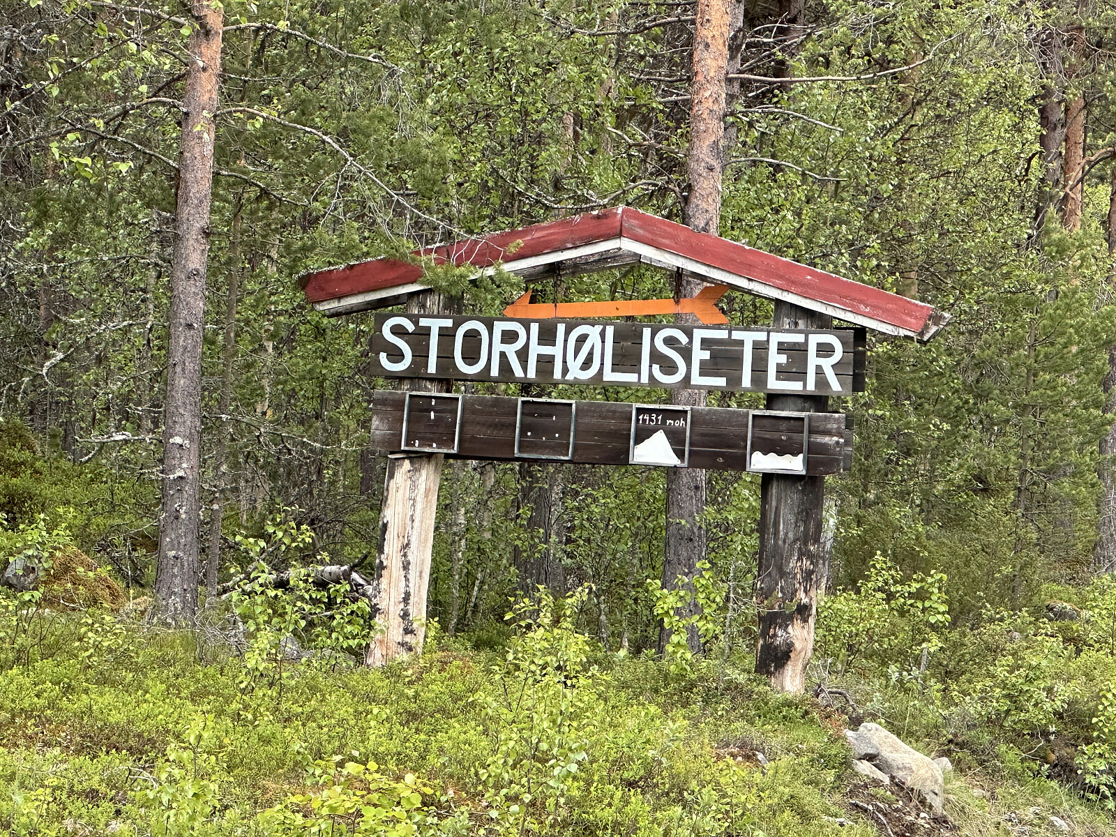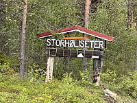 Hadde vært å besøkt min søster og svoger på Ringebu, og kjørte til Skåbu, forbi den fine rasteplassen Slangen og videre opp til avkjøringen inn til Storhøliveien. Ikke veldig god denne veien her. Relativ smal grusvei, med mye hull i. Men kjører man forsiktig og sakte så kommer man frem. Storhøliseter hyttene ligger på et stort fint tun, med mange små hytter på. Det er bare en av hyttene som driftes av DNT og den er selvbetjent. Regn og grått i hele dag dessverre.