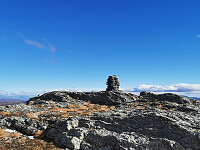 Våknet opp på Stavali til nok en dag med fint vær, men fortsatt noe kraftig vind. Gårsdagen hadde jeg gått 28,5 km fra Hjølmo over Nuhaugane , så kjente det litt i beina denne morgenen. Turen begynte bratt rett opp fra hytten, så det gikk ikke så veldig fort. Men, over 1300 moh ble det litt slakkere terreng og farten økte litt. Nådde det tidligere topp-punktet på Randinuten etter 1 time. Her oppe blåste det kraftig, men tok meg likevel tid til å stikke innom punktet rett vest av toppen. Videre var det bratt ned i sadelen mot nordtoppen og det nå høyeste punktet på Randinuten. Denne toppen er ikke like spennende som den første, men fin utsikt vestover. Gikk også oppom det mye mer distinkte og brattere, men lavere østlige utsiktspunktet. Her tok jeg også en kaffepause i le av toppen.