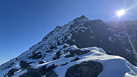 Dag 4 av min «høstjakt» på 2K-topper. Fikk bruk for både truger og isøks, mens stegjerna fikk ligge i sekken. Skal si isøksa var god å ha for klyvinga opp til Veslfjelltinden fra bandet mot Loftet. Med snø i steinura og på svaene var det stedvis veldig glatt.