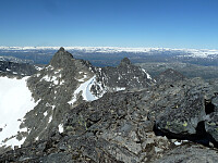 Vi brukte ca. 6 timer fra Torfinnstind og over ryggen + returtid ned til Bygdin for noen, og videre om Kvitskardtind og oksle for meg og Ola.