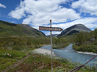 For et vær og for en vakker dal. Vi labber avgårde etter nydelig frokost på den stilige og trivelig betjente Sognefjellshytta. Turen til Skogadalsbøen skal ta ca. 4-5 timer og vi har all verdens tid. Vi nyter utsikten og koser oss i varmt sommervær. Turen er for det meste slakt nedover, ca. 650 høydemeter ned, noen få meter opp, 14 km. Skogadalsbøen skuffer heller ikke. Med ungt og uredd vertskap, som håndterer matlaging, baby, luftambulanse, skadde folk, hund som spiser lemmen og dør på gårdsplassen og mye mer på strak arm. Imponerende.