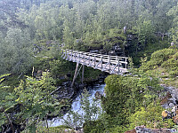 Veldig fint og lettgått terreng. Paradisjuvet var imponerende men det var overraskende seigt og langt ut hit. Lettgått og fin sti. En steinformasjon som står helt utpå kanten. Her kjente jeg faktisk at beina begynte å skjelve. Det var såpass. Kroppen ble liksom dratt ut mot juvet. Greit å bare gå pent tilbake. Stakk en tur ned til det lille tjernet ved demmingen for å sikre en turpost. Noen folk på tur, men overraskende stille.