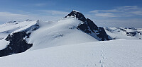 Videre på breen gikk det jevnt og trutt til dagens mål ble nådd. Ekstra bonus var å få med et besøk til Svartenibba, som til alt overmål ble dagens klart fineste utsiktstopp!