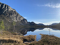 Finverstur til minnesmerket etter flysleppet på Brogaheia under krigen. 81 år sidan sleppet den komande natta og på tide å bytta ut flagget ! Førsteklasses skyss og lag med Jarle over Liarvatnet og Forenesvatnet, og med traktering og drøs i hytta hans etterpå.