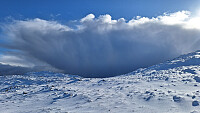 Det var spådd nedbør og vind fra ettermiddagen mens forholdene var fine på formiddagen. Hadde med både brodder og truger, men fikk ikke bruk for noen av delene. Veien til vindkraftanlegget var brøytet og bare devis isete, og det var mindre snø her enn i ytre så trugene ble også overflødige. Flott rundskue fra toppen.