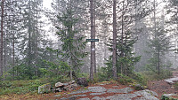 Det sluttet å regne da jeg parkerte, men det ble definitivt ingen tørr tur. Det dryppet ustanselig fra trærne, og de stod tett mesteparten av ruta. To plussgrader ved start. I høyden frøs regnet på greinene, og jeg ble pepret med isbiter. Aldri opplevd noe lignende før. Ble ikke noe mindre våt av det. Tåka lå hele veien. Tilbake igjen i bilen på Lindeberg hadde jeg fått intet mindre enn to bøter. Den ene bota var grei nok og skyldtes latskap, men den andre for "manglende synlig urskive" skjønte jeg ikke helt da jeg ikke så annet skilt enn maks 8 timers parkering.