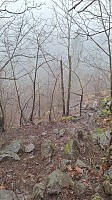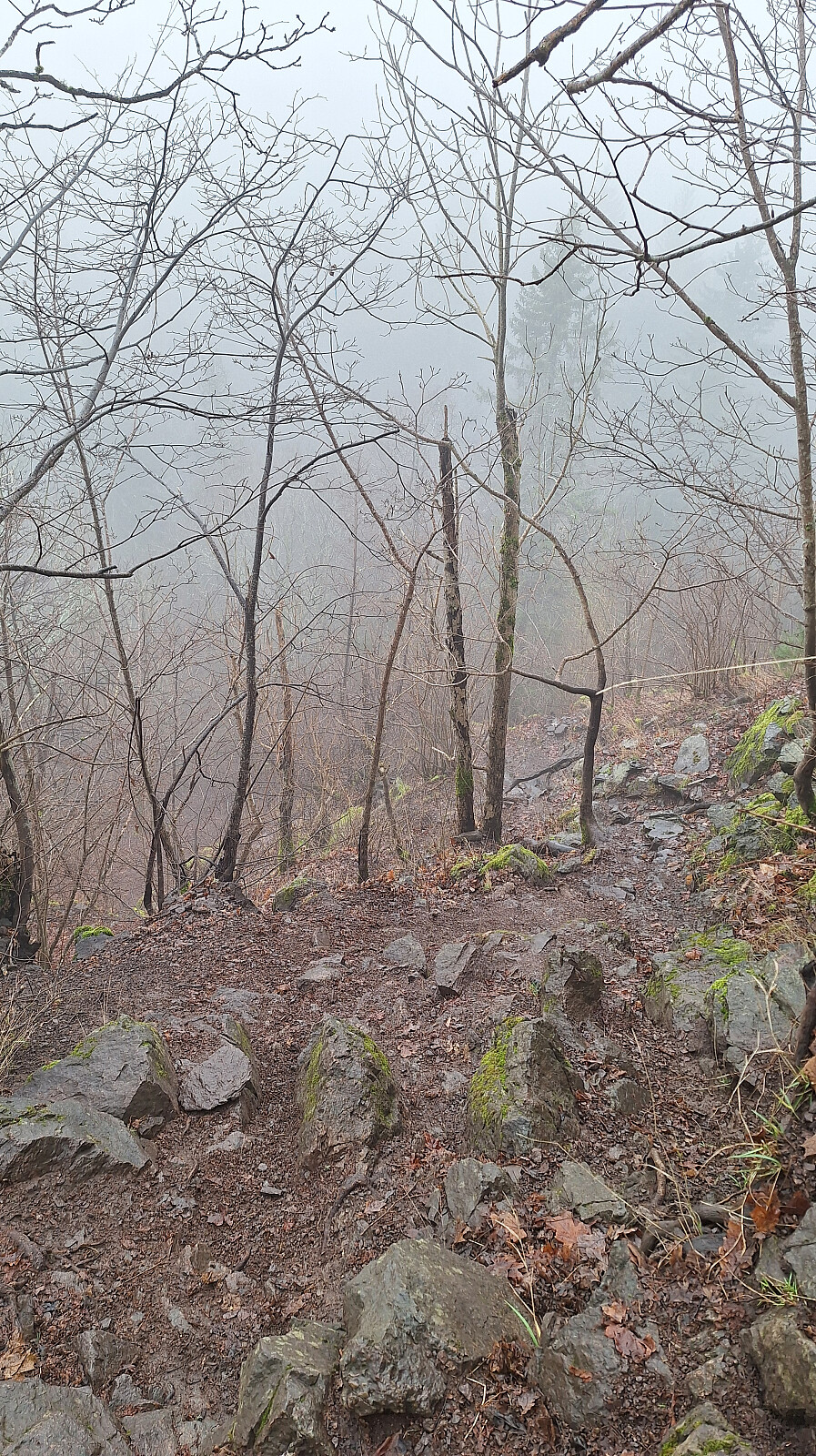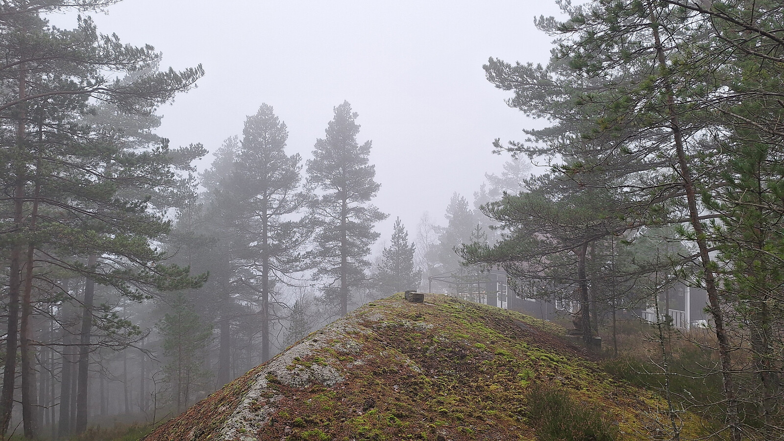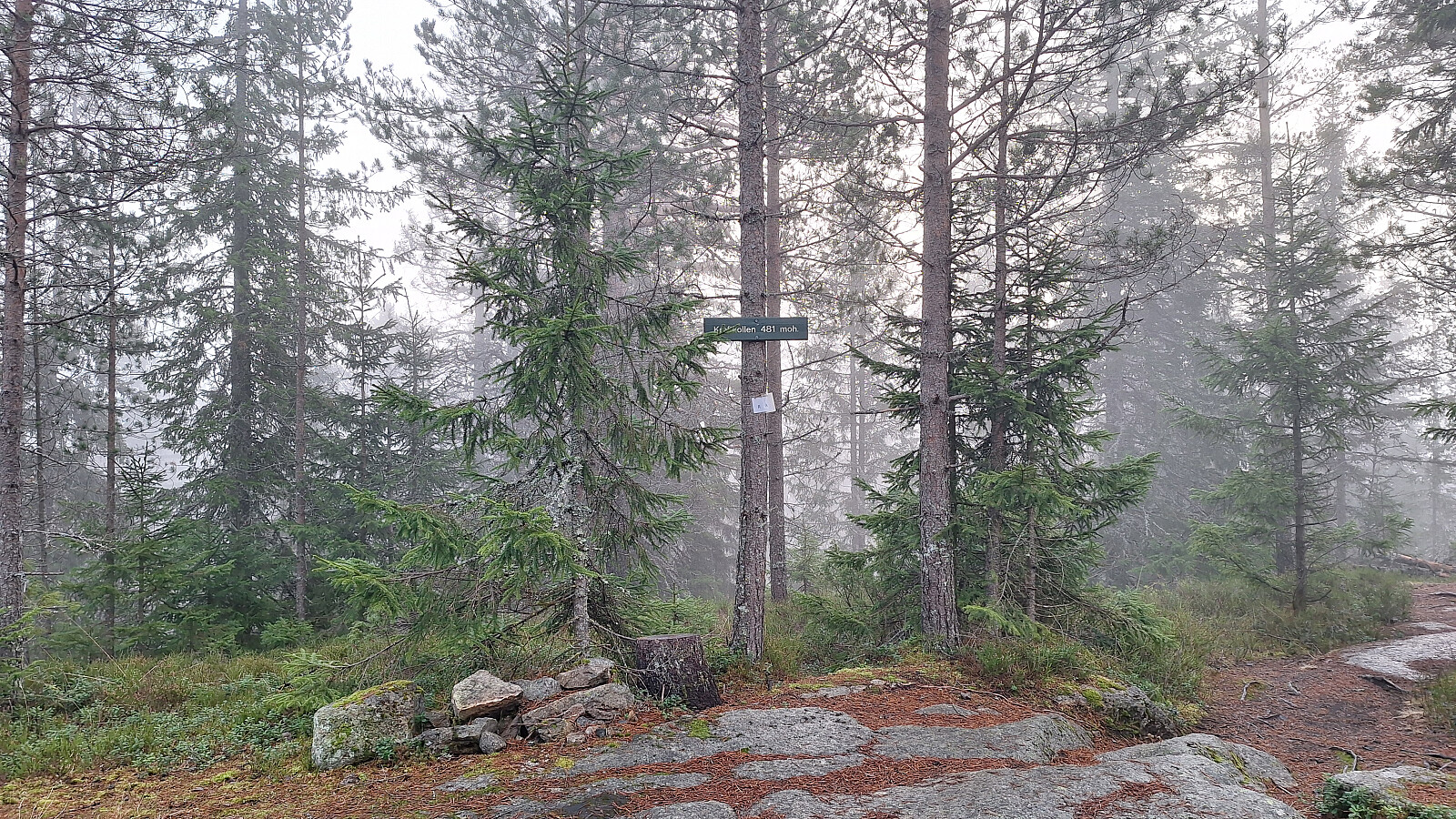 Lagde meg en rundtur i tåka. Utrolig glatte steiner og sva, som om de var belagt med sleipt slim. Valgte derfor en slakere rute ned. Mange biler på utfartsparkeringen, men folket holdt seg i lavlandet. Møtte bare én fyr i høyden.