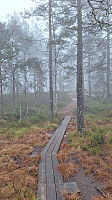 Ifølge yr skulle tåka lette utover dagen, og sola skulle til og med komme fram, men jeg fikk bare et hint før mørket kom. Ingen utsikt på Kjerringhøgda, og litt opplett på Tonekollen. Der blåste det durabelig på stupkanten. Fulgte sti og vei hele ruta og konsentrerte meg om å tråkke trygt blant vannpytter, sleipe steiner og røtter. Mange oversvømmelser underveis, men framkommelig.