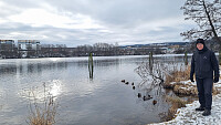 Det har blitt mye sulling i gatene her i januar og en del turer på treningssenteret, men i dag meldte Yr gløtt av sol og vi ville på tur i skogen, men Yr sviktet. Ble en fin tur likevel. Berit prøvde å få fyr på bålet ved Tvittingen, men bålmaterialet var for vått. Berit og jeg gikk med brådder, Kristen uten. Litt is her og der, men fint underlag.