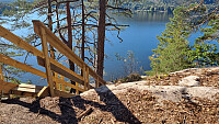 Nye fine trapper og god sti nå. Kosa oss oppe på toppen (sti merket Gravplass). Enda finere utsikt derfra. Nydelig vær.