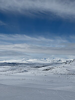 Start fra stien mellom Spiterstulen og Glitterheim. Lite snø, så litt baskete å komme seg inn på Skautflye. Heldigvis mer snø innover der, og ikke minst i renna opp mot toppen. Fantastisk nedkjøring helt ned til Skautflye igjen. På med feller da snøen var trå. Siste biten ned til vegen handla mest om å finne nok snø til å kjøre på. Ble noen nye riper under skia...