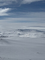 Vi trodde Hettpiggen var grand finale, men så dukka denne luringen opp... Vi sjekka sporet fra turen til Leirhøe på GPSen, men nei da...Ikke langt unna, men langt nok til at samvittigheten tilsa at vi kunne registrere toppen uten å ha vært der. Start fra stien mellom Spiterstulen og Glitterheim. Lite snø, så litt baskete å komme seg inn på Skautflye. Heldigvis mer snø innover der, og ikke minst i renna opp mot toppen. Fantastisk nedkjøring helt ned til Skautflye igjen. På med feller da snøen var trå. Siste biten ned til vegen handla mest om å finne nok snø til å kjøre på. Ble noen nye riper under skia... Flott påskevær, trivelig selskap (takk Elefla (Eldrid Ekre flatmoen) ) - som gidder å bli med "Gæmlisene på sære topper) til tross for at hun har vært der før, og lista komplett igjen - enn >>>