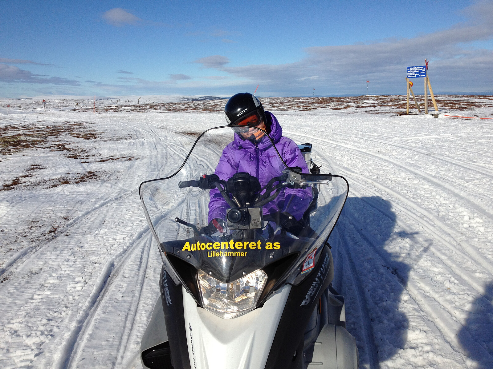 Snøscootertur rundt i området og over noen topper. Kjørte over mange av toppene flere ganger i løpet av vinterferieuka. Både med uvær og med flott solskinn.