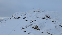 Litt mere snø nå, men fortsatt muligheter for nye riper med stein rett under overflaten. Var ferske spor opp til ryggen. Løssnø og god trening til topps derfra.
