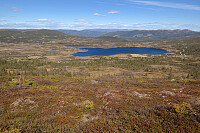 Flott vær da vi rullet forbi alle hyttene på fjellet ved Haglebu seter og Haglebuvatna. Da vi hadde kjørt et stykke nedover i retning Bromma, svingte vi av Fv287 ved Svangtjernseter. Herfra fulgte vi Mytevegen vestover, en grusvei hvor bomavgiften nå var på kr 65,00. Vi betalte med kort i den automatiske bommen, og kjørte mot >>>