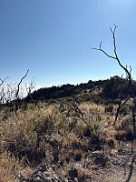 Etter en lang møtedag i Søgne var det godt å ta på seg turtøy og klarne tanker og hode i skogen. Parkerte ved Søgne gamle prestegård og fulgte vei og sti et stykke før jeg tok av fra stien og ut i terrenget. Kronglete og bratt utenfor stien og ikke spesielt fint på toppen. Forholdsvis tilgrodd. En liten varde på toppen. Tilbake samme vei.