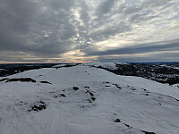Noe sol i starten, men ganske kaldt; rundt 15 minus. Jeg var heldig og fulgte stort sett i opptråkka spor til toppen. Etterpå var det bare å kose seg i pudderet ned igjen.