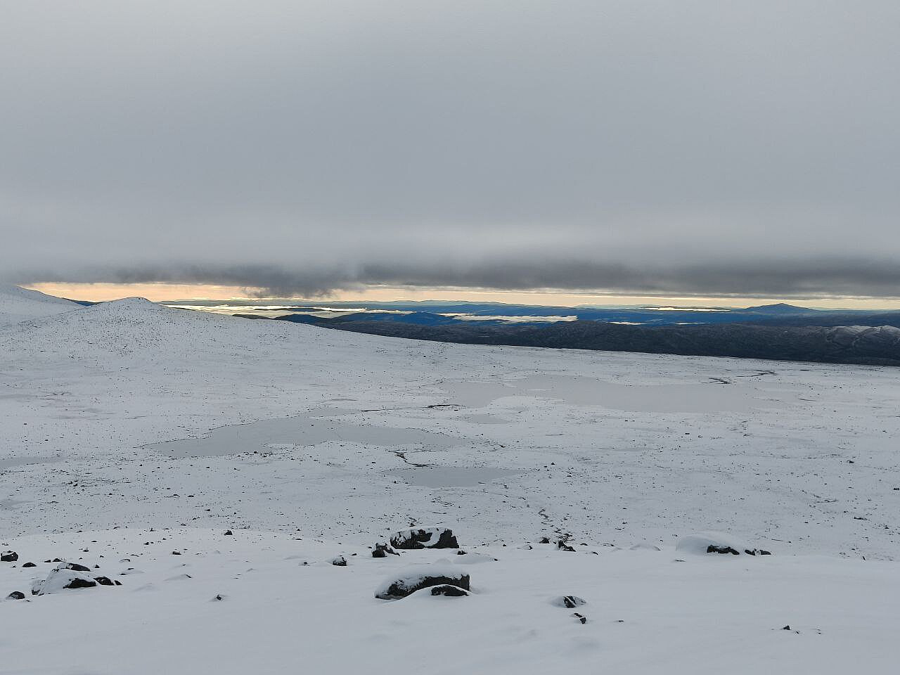 Stakk så oppom Hollastølsfjellet, der det sto en svart stolpe. Et fint tråkk leder opp dit fra hytta nord for Piltingsrud.