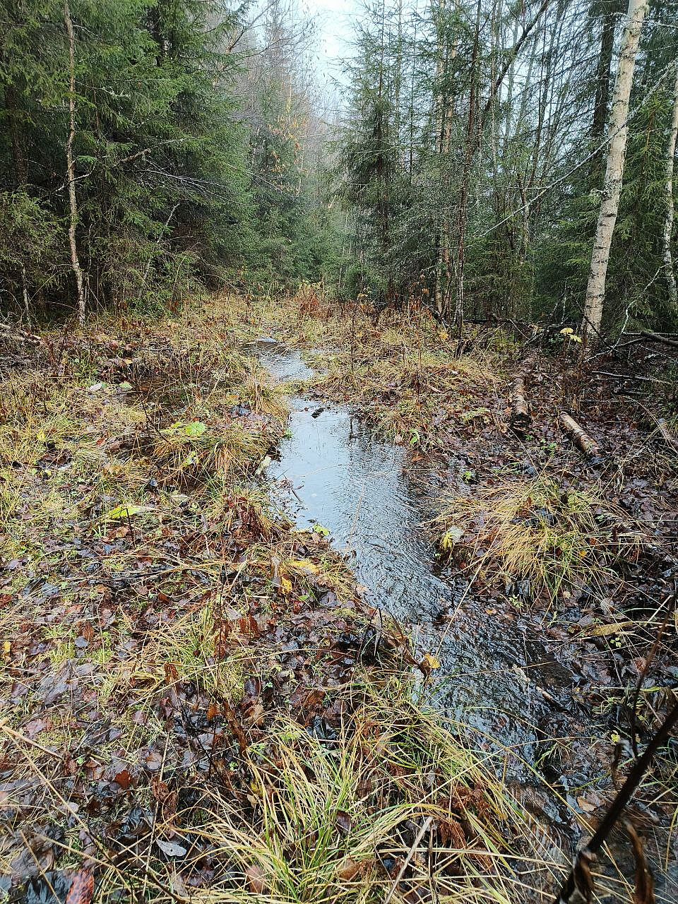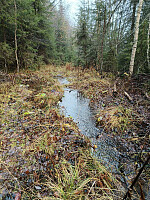 Syklet inn til Meitebekken i dag, for å hente flere stolper. Det var frisk vind, og ørlite regn fikk jeg også der inne.