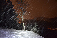 Kveldsrunde med snø i lufta. Rundt 1 minus. Fint lag med nysnø. Var på toppen kl 20.15.