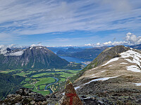 Tur med pappa på ein av dei varmaste dagane i sommar. Flott utsikt frå Skomakarnipa, men det beste med turen var bading i eit fjellvatn.