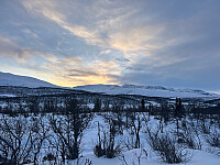 Fantastisk skue med tåken som lå nede i lavlandet, og solbelyste snødekte >>>