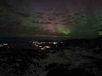 Så at det var sterk nordlys, så jeg kjørte fort til Storekleiva for å få bedre sikt. Det lyste hele turen, og det var sterkest rett før toppen. Synd at mobilkameraet på den nye telefonen min er ganske dårlig, men fikk noen greie bilder med bruk av Pro-modus.