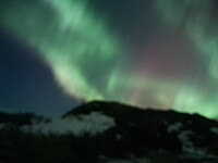 Så at det var sterk nordlys, så jeg kjørte fort til Storekleiva for å få bedre sikt. Det lyste hele turen, og det var sterkest rett før toppen. Synd at mobilkameraet på den nye telefonen min er ganske dårlig, men fikk noen greie bilder med bruk av Pro-modus.