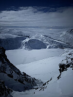 Torsdag ettermiddag kjørte jeg fra Valdres i tåke og lavt skydekke til Bessheim. Ved passering av Båtskaret kunne jeg se solen skinne på Bitihorn gjennom skydekket. Like før toppen av Valdresflye lettet skydekket helt, og solen kom frem fra en lettskyet, blå himmel. Det var meldt godt vær denne ettermiddagen og kvelden. Planen var å slå vintercamp på toppen av Besshøe (2258 m) og overnatte på toppen natten til fredag. Det er noe eget med å overnatte på høye fjell og se utover det mektige landskapet derfra. Denne natten skulle bli min første natt på en 2000-metertopp vinterstid. Jeg har kun ved to tidligere anledninger overnattet på fjell i denne høyden i Norge, men disse var i den lyse og varme årstid; en natt i mai på Store Soleibotntinden og en natt i juni på Midtre >>>