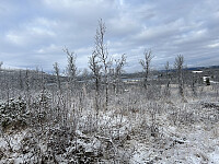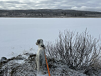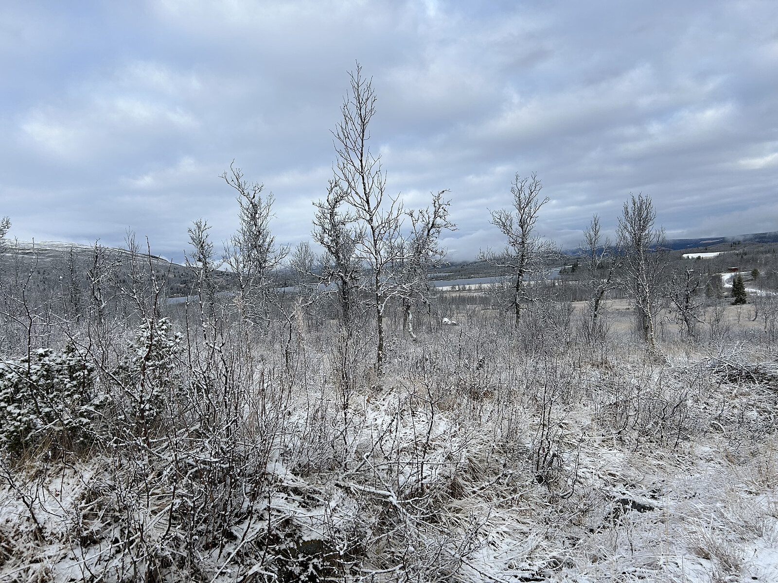 Tur sammen med Trym. Det hadde kommet 1-2 cm snø i løpet av natta, og vi valgte å gå langs Revsjøveien oppover. Snudde i svingen opp mot Vetafjellet, og tok en avstikker bort til Moatjønnet på tur tilbake.