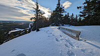 Tur alene med Embla idag. Langrennstur opp til Rausteinshytta der jeg skiftet over til truger for å gå opp til Torsæterkampen. Kommet en del nysnø. Fra Rausteinshytta på Langrennski forbi Abbortjern og opp kneika mot Tjuvåskampen. Skiftet til truger og gikk siste ryggen opp til toppen. Fin temperatur. Ca 0 grader, men tørr og fin snø.