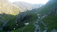 The relatively steep trail passed by several small cabins at Kinn, before winding its way up towards Skriksvatnet. The trail passed by Skriksvatnet on the eastern side, but it was clear that this part of the trail was not as heavily used as the preceding parts, and shortly the trail more or less disappeared.