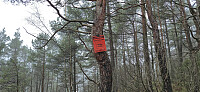 After following the marked trail via Nordre Gamletjørnhaugen , I left it shortly after Lillianbrekko and headed off-trail via various deer tracks to the summits of Hovåsen Sør and Hovåsen. At Hovåsen Sør there was a trig bolt and a view down to Kismul Skyte- og friluftssenter (closed on Sundays, except for special events, according to their web page). There may also be ok views from Hovåsen but these were all hidden by the fog.