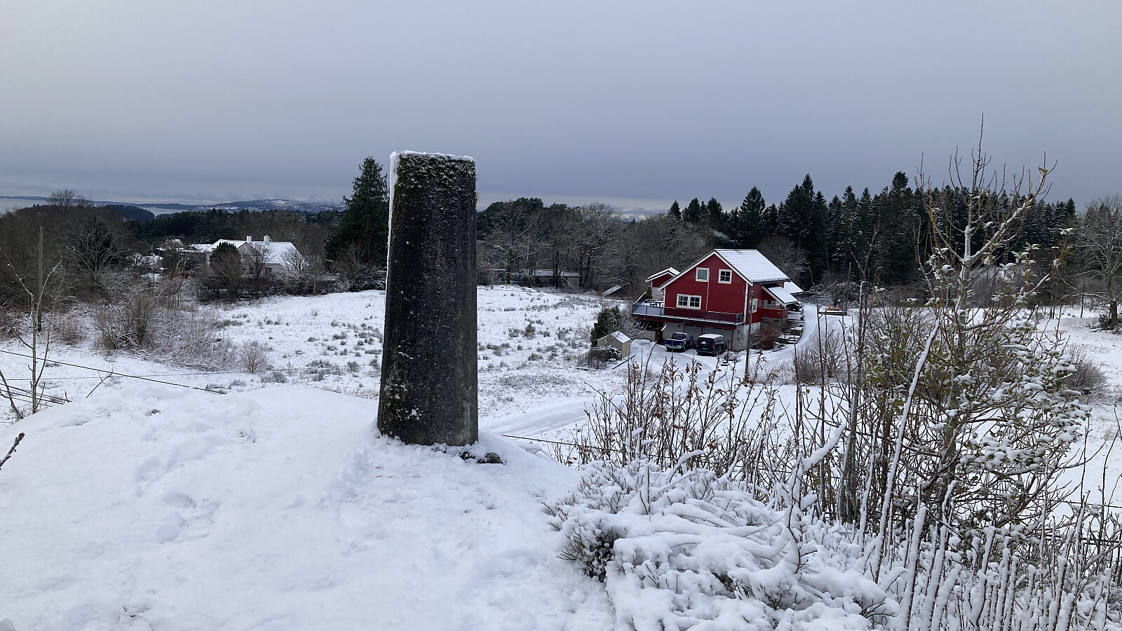 Vi dro først ut til Hordnes nord for Fanafjorden til Hordnes søyle . Søylen står på en knaus merket Hordnes på norgeskart.no., like sør for Hordnesvegen 167. Stedet ligger bare ca. 20 m fra veien. Vi fant ingen sti, men terrenget var dekket av 5 cm snø. GPS 32V 295810 6686484, 55 moh. Søylen er støpt i betong, ca. 1 m høy, diameter på toppen ca. 30 cm. Liten metallmarkør sentralt på toppen. Bergen kommune ID nr. 0147. Til tross for den lave høyden, flott utsikt over nærområdet og sørover mot Krokeide og Korsneset.
