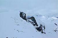 gnagsår hos turfølget som i dag debuterte med plastsko og brede ski. Han klarte seg meget bra på både opp og ned. Vi tok oss en god rast på toppen før vi kjørte ned igjen på til tider nokså sugende underlag.