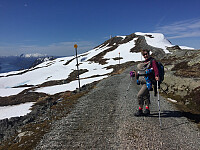 De små var kjempeflinke til å gå, og Vinjar som var minstemann klarte å gå helt til topps og halvveis ned igjen. Da tenkte mor at det kanskje var greit at han fikk være litt passasjer siste biten ned til bilen igjen. Den store og gode matpakken lå nemlig igjen hjemme >>>