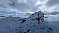 Valgte å gå opp skitrekket for å forlenge turen i dag i tilfelle jeg ikke gikk lenger enn til Kollhøe. Det var et godt valg, da det etterhvert ble mer vind og ble ganske så surt. Lite snø i høgda, men greit nok. Flatt lys og snøføyk på teturen gav meg bekreftelse på at det var greit å ikke forlenge turen. Toppene bakover får taes under bedre forhold.