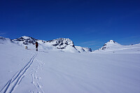 Ryssdalsnebba en utrolig lett og fin tur, vi kjørte opp Trolltindveien til den store anlagte parkeringsplass. Herfra var det bare å spenne på seg skia og rusle slakt oppover til Romsdalsskaret, mens vi kunne nyte utsikten til dagens topp med en skodde dott på. Videre tok vi av mot Gråfjellet og fortsatte opp etter ryggen til topps. Vi fikk lavt skydekke de siste hm. så den fine utsikten utgikk … men til gjengjeld fikk vi en fin nedkjøring til startpunktet.