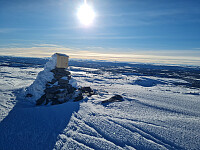 Etter at jeg brakk skistaven i går, ble det tur til Skei i dag for å kjøpe nye skistaver. Etter butikken ble det skitur fra Fjellandsbyen i et aldeles nydelig vintervær. Gikk over Prestkampen og Slagsfjellet. Noe vind over toppene.Ganske tung brøyting utenom løypene, og litt vondt å kjøre utfor, da det utenfor løypa vekslet mellom skavler og djup løssnø.