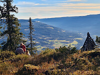 Tur på Prestkjerringa i dag. Kjørte til Nysetra, hvor det var et par biler med elgjegere. Gikkvanlig rute til Prestkjerringa. Herfra over Rævskorohaugen og Flugstadfjellet, og direkte opp på Hindalsfjellet. Nede på Nysetragikk jeg bortom Steinehytta som har fått et flott tilbygg. Kjørte deretter til Hærfjellet parkeringslomme og gikk oppom Hærfjellet. Turlengden er ibergnet 2.5 km bilkjøring, så gåturen blir 13.7 km. Nede ved bilen greide jeg å avbryte peakbookappen, i stedet for å avslutte den. Flott turvær, men en kald nordavind.Så to andre vandrere i dag.