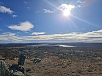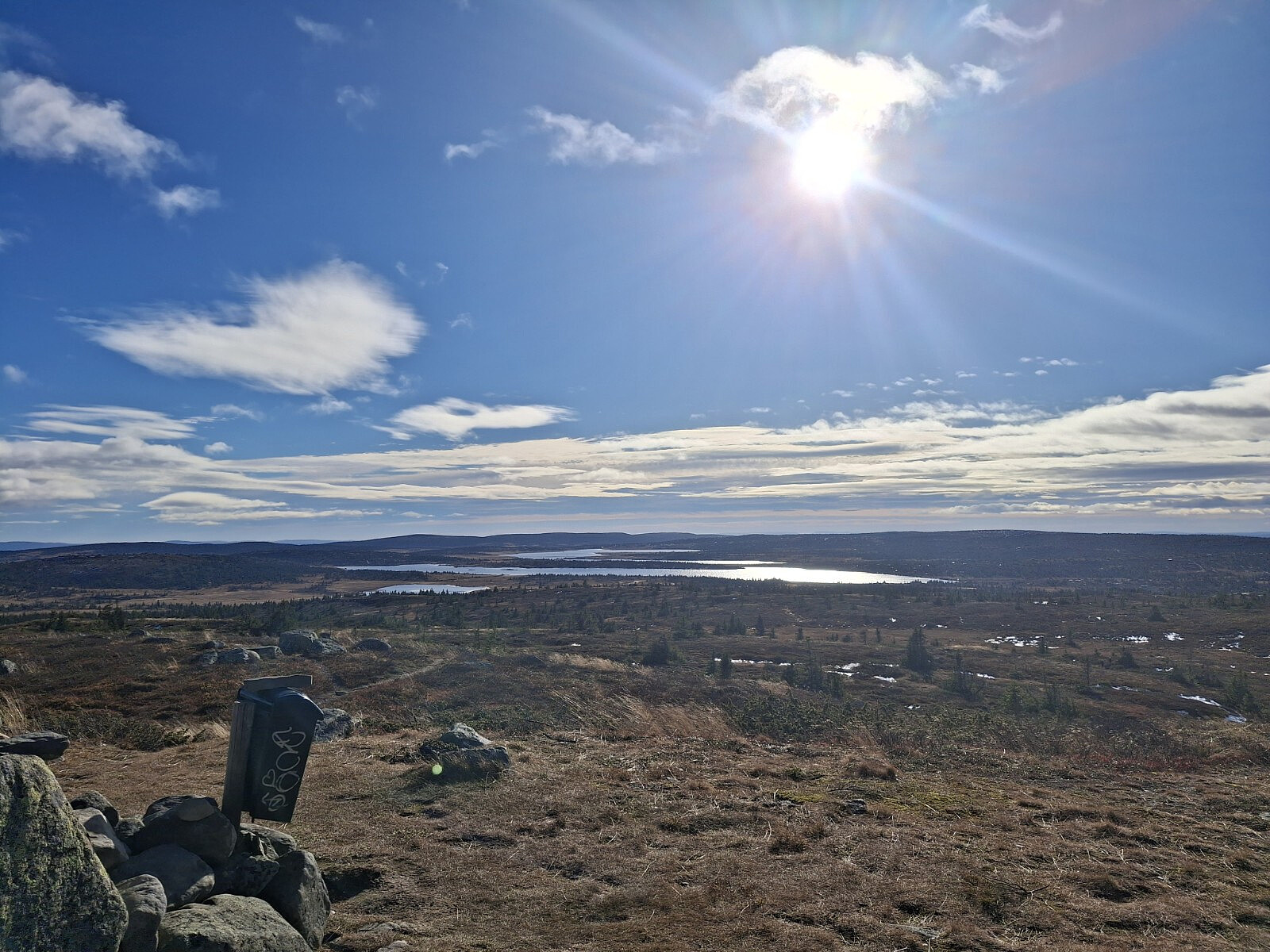 Etter deilig formiddagsmat i Torke Terasse, dro Anne Grete og jeg til byen. Der fullførte jeg Monolittrunden og vi gikk en tur langs Mjøspromenaden før vi gikk korteste veg til Hovdetoppen. Vi var også en liten tur på Eiktunet. Registrerte 23 nye stolper.