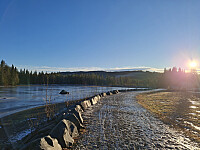 Tur fra Kanalen i nydelig vær, litt varierende underlag, snø, is, bart. Nå er det bare snøen som mangler.