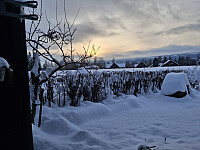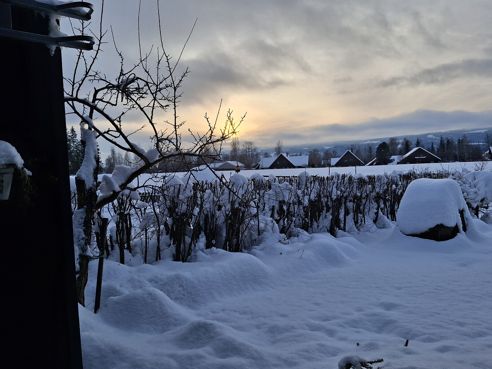 Det har kommet mye snø det siste døgnet. Holdt på å måke snø på verandaen da jeg så at det ble kjørt løype på jordet nedenfor. Da ble jeg inspirert til å gå ut en tur, selv om jeg hadde tenkt å fullføre å rydde bort jula. Begynte på det i går, 20. dag jul.