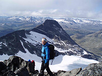 Gikk opp breen til sadelen mellom kampen og Piggen og deretter opp på selve Slettmakspiggen. Utrolig kul og bratt toppunkt. Her var det ikke mye plass. Null utsikt, men fikk alikevel høydefølelse. Ned igjen over Kampen.