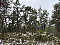 For å få til en liten rundtur gikk jeg over til Tjuvdalshøgda, før jeg stort sett fulgte høyspenttraseen tilbake til veien. Heller ikke denne toppen kunne imponere med fin utsikt, og i tillegg var den utpreget flat og uten noe naturlig toppunkt.