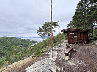 Jeg kjørte ned til Hoplafjorden og parkerte på Tomasplassen p-lomme. Herfra fulgte jeg veien oppover forbi en del hytter til et skar øst for toppen. Fra skaret og videre opp til toppen var det skiltet og merket en overraskende god sti. Stien passerte toppunktet som ligger litt anonymt midt inne i skogen, og fortsatte litt nedover til en gapahuk med en fantastisk flott utsikt. Det er ingen tvil om at dette er turmål nummer 1 i dette området og at det anonyme toppunktet på Hoplaåsen er mest interessant for toppsamlere. Jeg koste meg en stund ved gapahuken før jeg gikk samme rute tilbake.